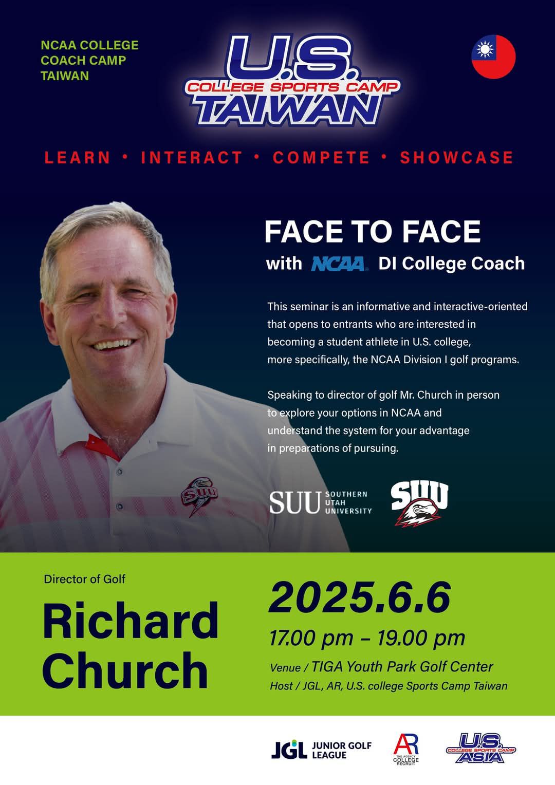 We are honored to invite Mr. Richard Church, NCAA Division I Head Coach & Director of Golf at Southern Utah University, to meet with our JGL community and share first-hand insights into U.S. college golf!